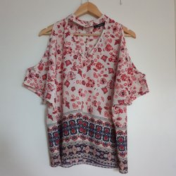 Shein vit/röd/blå blus, storlek 0XL