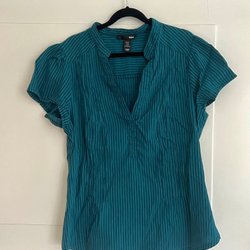 H&M turkos randig blus, Medium
