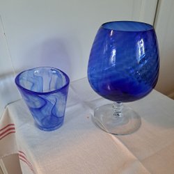 Vas och ljuslykta i blått glas, HV