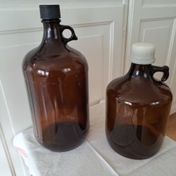 Två stycken bruna glasflaskor