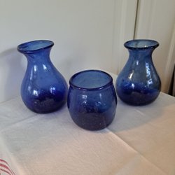 Tre vaser i blått glas