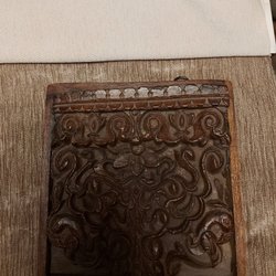 Äldre Trädekoration med Sniderier med hänge bak