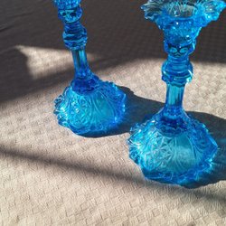 Ljusblå ljusstakar i glas från Zabkowiche Polen 1960 tal.
