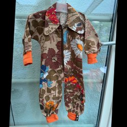 Nysydd brun orange overall i 70 tals tyg storlek ca 6 mån