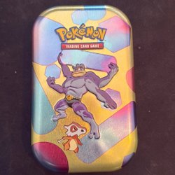 Pokemon tin with 50 random pokemon cards