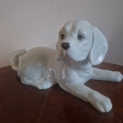 Porslinsfigur, liggande hund