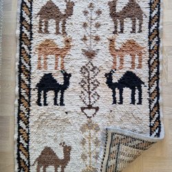 Två handknutna mattor med kameler