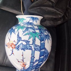 Vas med blommor och bambumotiv