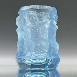 Schlevogt Vas – Blått Glas med Putto – Tjeckien 1930-tal Art Deco Vintage