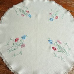 VACKER VIT BORDSDUK SIRLIGT HANDBRODERAD I FINA FÄRGER