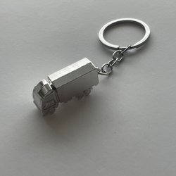 Nyckelring formad som lastbil. Silvrig färg