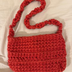 Röd flätad handväska