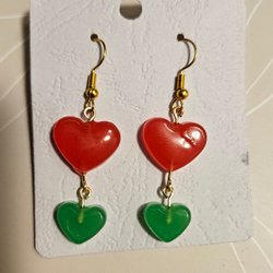 Handgjord Örhängen med gröna hjärtan