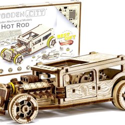 Wooden City Hot Rod - Mekaniskt 3D-pussel