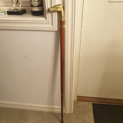 Antik käpp med hästhuvud i mässing