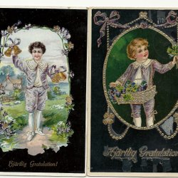 2 mycket vackra, gamla Gratulationskort över 100 årgamla