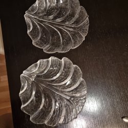 Två bladformade glasskålar