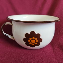 Retro emaljerad potta med blomma