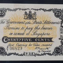 Straits Settlements 25 cents 1919 XF+