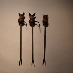 3 cocktailpinnar träkatter 2 + 1 CORICAMA ROSTFREI ca 10, 5 cm långa