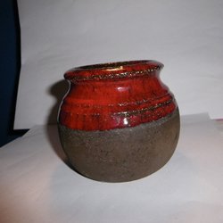Faxe Denmark delvis rödglaserad keramikkruka ca 8 cm hög retro