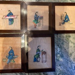 Kinesiska målningar att hänga på väggen, antika. 5 st.