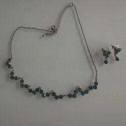 Set med halsband och örhängen med blå stenar
