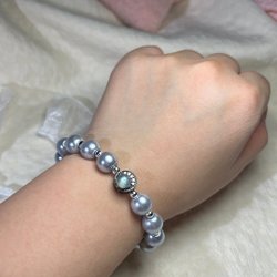 Blue Chalcedony & Glass Pearl & Copper Bracelet ( Max 16cm )