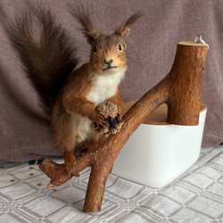 Uppstoppad Ekorre på Trädstam