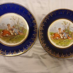 Två dekorativa tallrikar i blått och guld