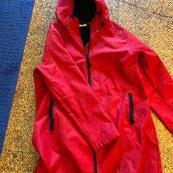 Röd regnjacka