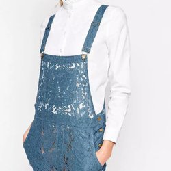 Ganni blå spets-jumpsuit, storlek M