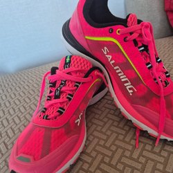 Puma fotbollsskor i lila och orange, storlek 34