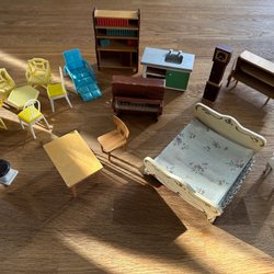 Vintage dockhusmöbler, 17 delar