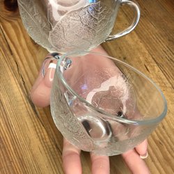 Två glas koppar med lövmönster