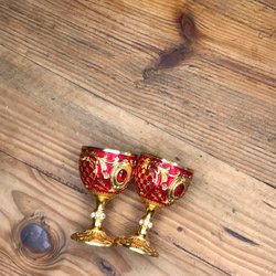 2 st röda och guldfärgade bägare