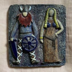 Keramik. Vikingar. Väggrelief. Väggplatta. Eva Hellbom