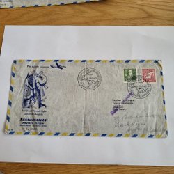 SWISSAIR HELVETIA till Sverige REK COVER MED CHARGE 1947 med USA postmark