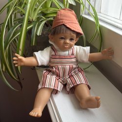 Vintage docka, sköldpadda 16/18, med klänning och hatt
