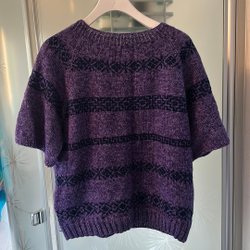 Ny handstickad kortärmad tröja i lila/blå färg storlek dam 46/48