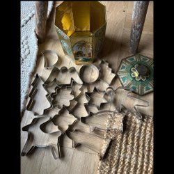 Äldre plåtburk pepparkaksformar julbak