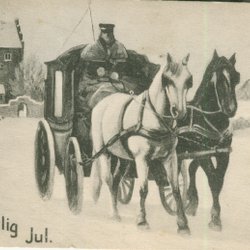 Hästvagn i snölandskap-god jul-fint kort