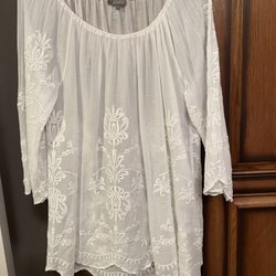Fiore vit blus / tunika med broderier strl L