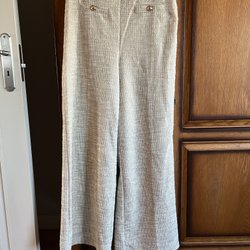 Beige-vita byxor med guldknappar Strl L-XL