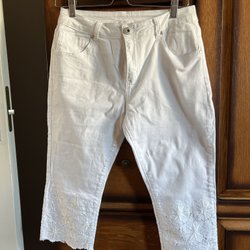 Jeans vita med broderier vadlånga strl M