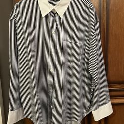 Snygg skjorta marinblå - vit strl XL