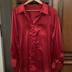 Fint röd silkig blus Strl XXL