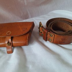 Vintage militärt läderbälte och patronväska i brunt läder