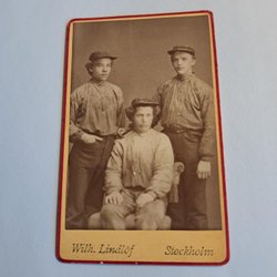 antik fotografi med 3 män i arbetskläder