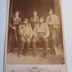 Antik fotografi, tre män i arbetskläder